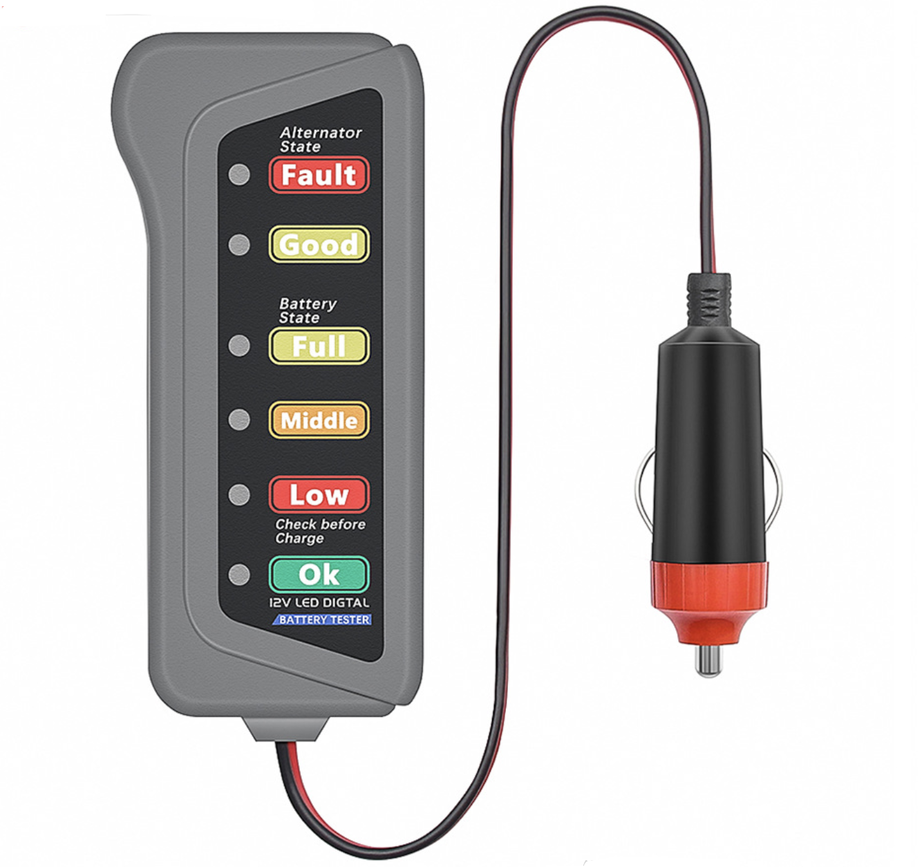 This battery tester, safe and easy to operate, has multiple functions: alternator state check, battery condition check, check before cargo and overload. Display, tell us the state alternator and battery, thus improving our driving safety.